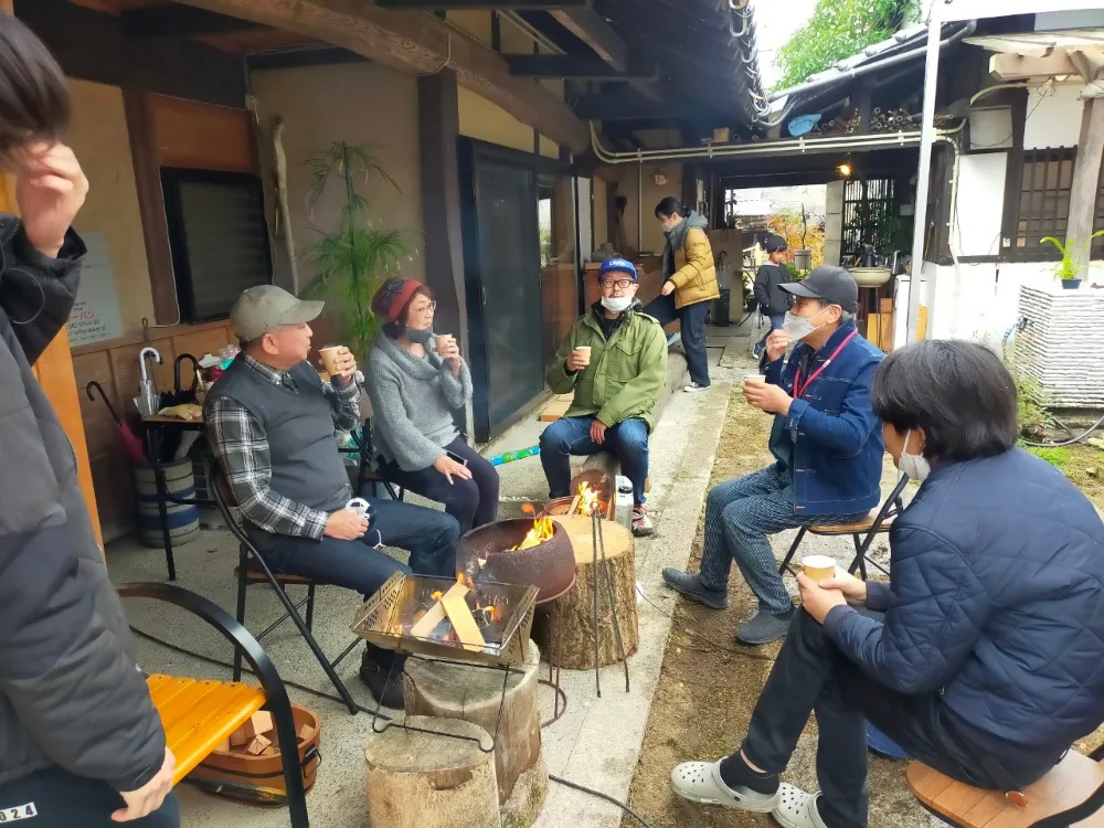 緑豊かなラーバンの庭で火を眺めながら、\ たき火で焼いたマシュマロ・薪ストーブで焼いた熱々ホクホクなやきいももご賞味ください。 コーヒーでほっと一息くつろぎの時間を。