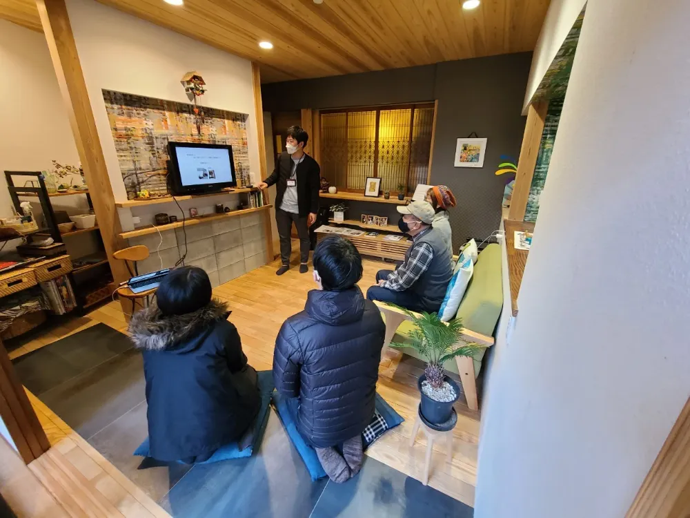 壁掛けエアコン1台で家全体を暖める床下暖房エアコンを取り入れている母屋にて、 床下暖房エアコンについて詳しくセミナーでご説明いたします。 足元からじんわり心地よい暖かさをぜひ、ご体感ください。 また全館空調など、家づくりの冷暖房計画もご相談ください。