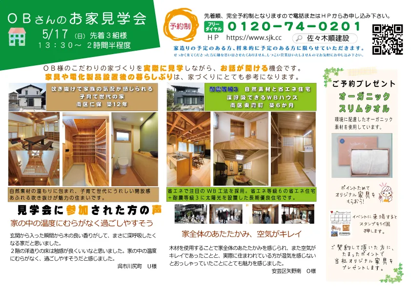 OB様のこだわりの家づくりを実際に見学しながら、お話が聴ける機会です。